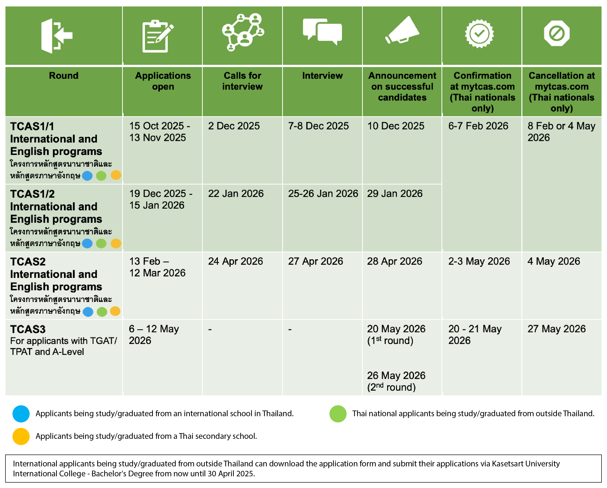 International applicants being study/graduated from outside Thailand can download the application form and submit their applications via Kasetsart University International College - Bachelor's Degree from now until 30 April 2026.